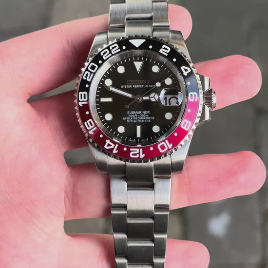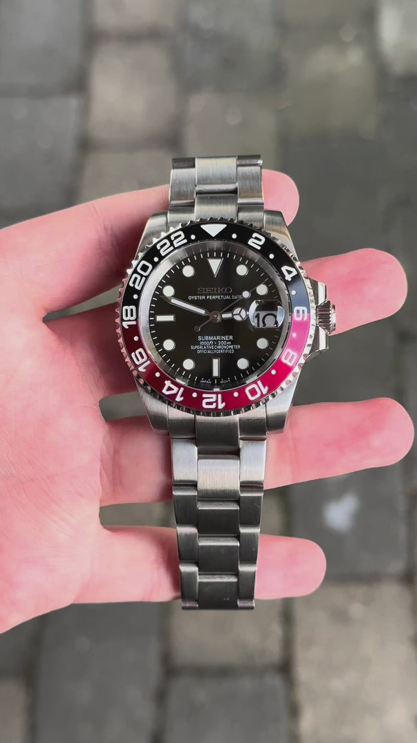 The Coke Submariner Mod stands out with its iconic red and black bezel, reminiscent of the classic 'Coke' color scheme. This watch combines vintage charm with modern reliability, making it a must-have for enthusiasts.