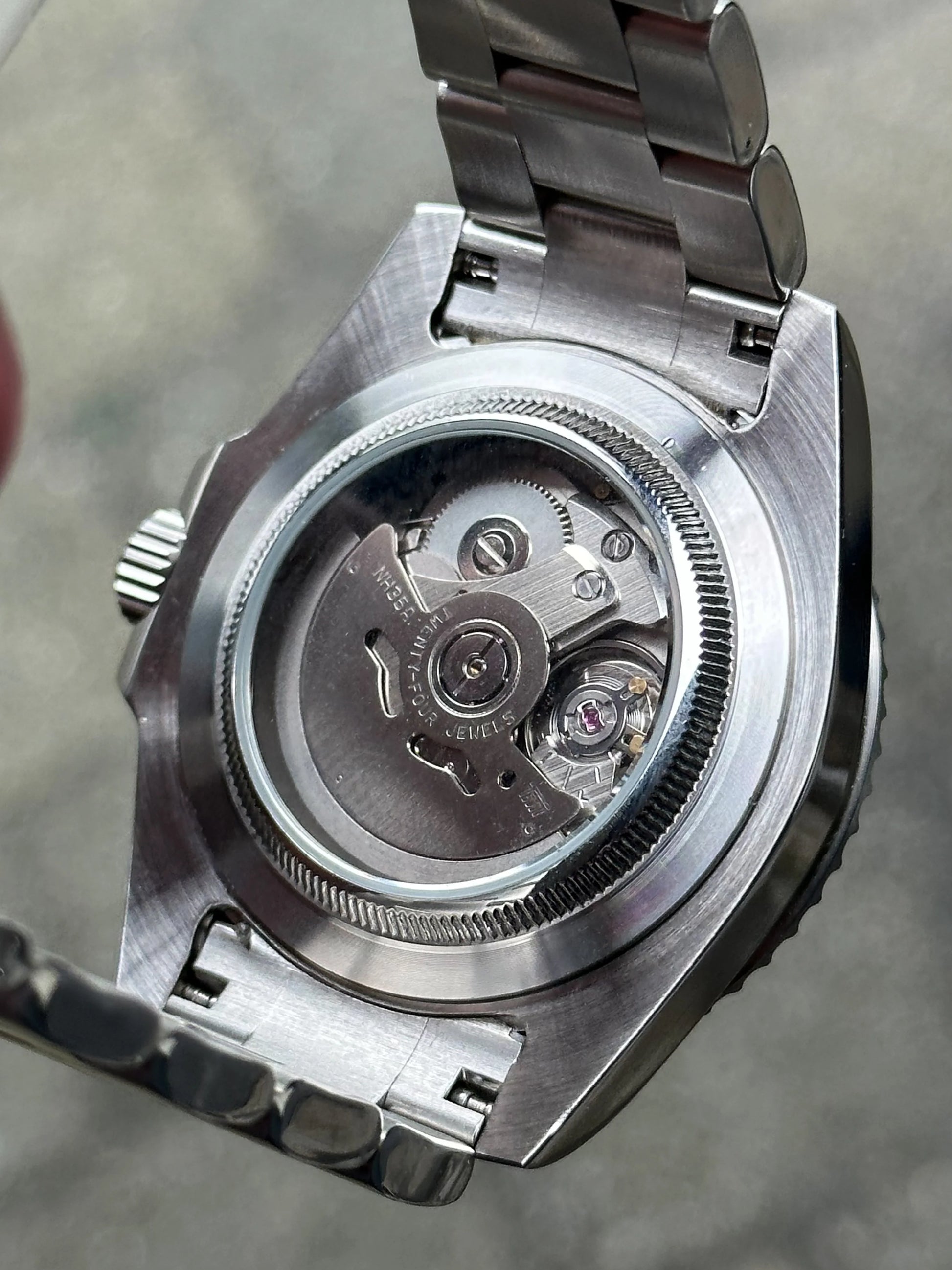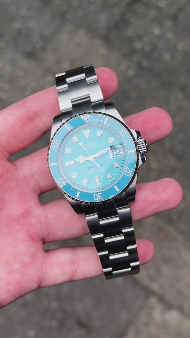 Dive into elegance with the Ice Blue Submariner Mod. Its captivating ice blue dial is complemented by a unidirectional ceramic bezel, offering both aesthetic appeal and diving functionality. The robust stainless steel case ensures durability for everyday adventures.