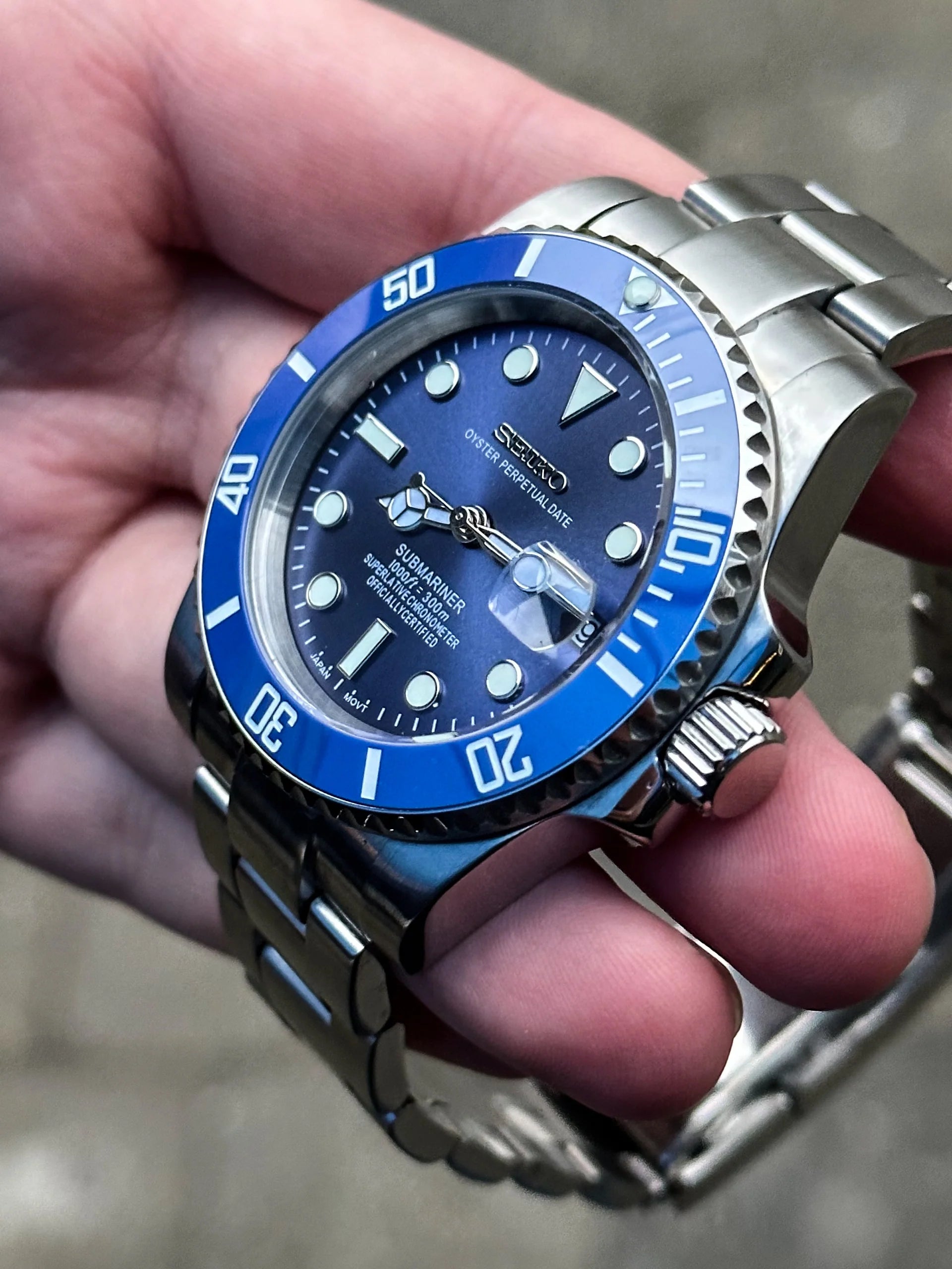 Introducing the Seiko Smurf Submariner Mod ā a bold reinterpretation crafted for the modern collector. This custom-built timepiece combines original Seiko movement with precision aftermarket components. Finished with a distinctive design and reliable performance, this mod is your gateway to refined horology.